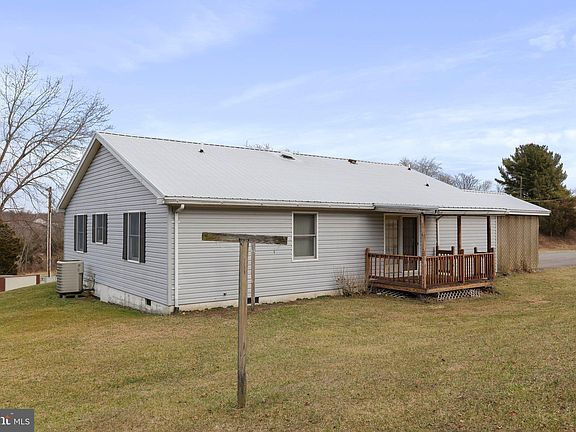 3 bedroom, 2 bath rancher situated on 1.44 +/- acre lot. Home features separate dining room, large living room with door to covered deck. Primary bathroom has double sinks, soaking tub, and separate shower. Large shed for storage or shop area. Conveniently located near interstate I-70 & I-81 for commuting. SOLD AS IS. 1 Year Home Warranty included.