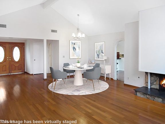 Welcome to 11757 Andrew Ave., an exquisite property that defines luxurious living in Granada Hills. Nestled in the serene and sought-after community of Granada Hills this home presents a unique opportunity to experience comfort with 5 bedrooms and 3 full bathrooms, sparkling pool, huge living room with floor to ceiling windows, vaulted ceiling, fireplace and beautiful hardwood floors. From the moment you arrive, you'll be captivated by the property's charming curb appeal. A well-maintained front yard with manicured landscaping set the tone for what awaits inside. Stepping through the front door, you'll be greeted by an interior that seamlessly combines mid century modern design with timeless elegance. The floor plan creates a sense of space and flow, with abundant natural light highlighting the exquisite details. The heart of the home is undoubtedly the gourmet kitchen. It's a chef's dream, featuring stainless steel appliances, double ovens, granite countertops, and a generous peninsula island with ample seating. Whether you're preparing a family meal or hosting a gathering, this kitchen provides the perfect setting. This home offers five spacious bedrooms designed for both comfort and privacy. The primary suite is a true retreat, complete with a walk-in closet, doors that lead out to a balcony with views of the city and sunsets along with a spacious ensuite bathroom featuring a separate walk in shower and vanity with ample storage. The remaining bedrooms are equally well-appointed, with ample natural light and large closets. The backyard is a true oasis with. It's a beautifully landscaped space that includes a covered patio, perfect for outdoor dining and relaxation and a beautiful pool to enjoy with family and friends. The lush green space provides ample room for play and recreation, making it an ideal setting for gatherings and making lasting memories. This property comes equipped an updated HVAC system ensures year-round comfort, whole house water filtration and PH system, newer roof, dual pane windows and sliding glass doors, while a comprehensive security system provides peace of mind. The location is unbeatable, offering easy access to a range of amenities, including shopping centers, parks, and top-rated schools. For outdoor enthusiasts, nearby hiking trails and recreational opportunities await. This property presents a rare opportunity to make your California dream lifestyle a reality. Don't miss out on this exceptional home.