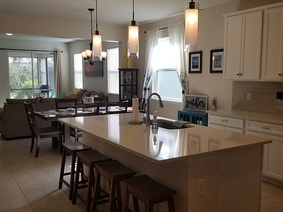Your new home in Wellen Park is waiting for you. Sip coffee on your private lanai as the sun comes up. Entertain your friends and family around the expansive kitchen island which is situated in the heart of the home. The kitchen, which is open to the great room features quartz countertops and a walk-in pantry. With 3 bedrooms, 2.5 bathrooms, great room, dining room, den and a bonus room you will not run out of space. At the end of day, relax in style, in your oversized master bathroom dual shower. Renaissance is a resort-style community located in the heart of Wellen Park and features a heated pool & spa, fitness center, playground and clubhouse. Plan to stay active playing tennis, pickleball or bocce ball. And, don't worry about cutting the grass because ground maintenance is included with your fees. Location is everything. This home is located less than 2 miles from CoolToday Park, the spring training home of the Atlanta Braves and about 12 miles from Venice Beach. Don't miss out on living a resort lifestyle close to beaches and entertainment. There is plenty of room for a pool in the back yard.