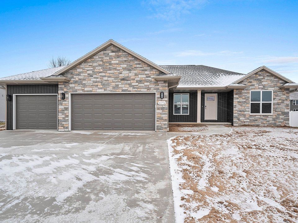 Welcome Home to this beautiful split bedroom, open concept ranch located in a highly desirable neighborhood in the Village of Howard! The kitchen boasts custom made, Flint stained, maple cabinets. Carrara Delphi Quartz countertops & Stagecraft Picket White backsplash complete this stunning space-perfect for entertaining! Cornerstone Summit LVP flooring can be found throughout the main living areas. Relax next to the 50" Simplifire Allusion Platinum Linear Electric fireplace surrounded by shiplap painted in Sherwin Williams Snowbound. Wood beams in the living room tray ceiling add a unique touch to this space. The primary suite is a retreat & has a bathroom with dual sink vanity and spacious walk in closet. Lower level is stubbed for a bathroom and has an egress window for future expansion.
