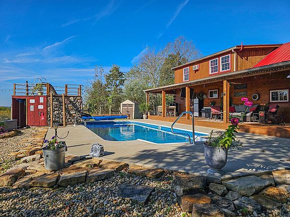 Welcome to 1176 Tick Ridge Road — a custom-built log cabin with 3,600 sq. ft. of rustic charm and modern comfort. Perfect for living and entertaining, it offers a wraparound porch, deck, walkout basement, and heated pool with slide and waterfall. Inside, enjoy an open kitchen and living room with fireplace, plus two bedrooms, full bath, and laundry on the main floor. Upstairs is a private owner suite, while the partially finished basement includes a bedroom, bath, office/whelping room, and flexible space. A 14-ft bay garage with skylights and loft adds room for work or play. For dog lovers, a 12-run kennel offers full utilities, indoor/outdoor pens, and two fenced play yards. Sitting on 3.25 acres across two parcels, the land provides options for resale, expansion, or recreation. Extras include newer appliances, wood-burning backup, and security system. Move-in ready and full of potential!