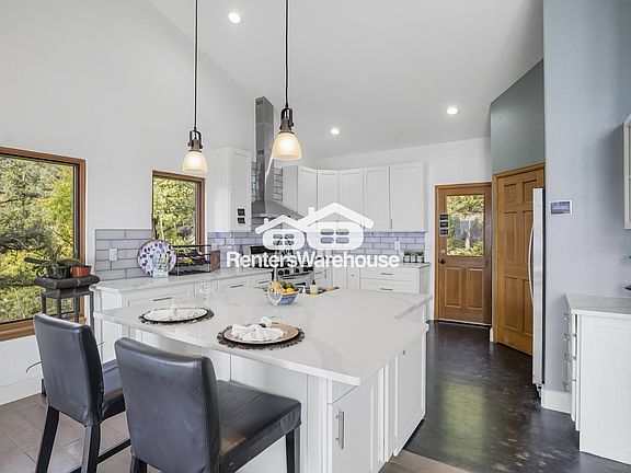 Nestled up a slop in the serene Kings Valley neighborhood of Conifer, this stunning remodeled home enjoys panoramic views of Pikes Peak. The living room features soaring vaulted ceilings, a fireplace and open-concept access to the kitchen and dining areas along with a wraparound deck to take in the fantastic views. The chef's kitchen includes a large island, gleaming quartz countertops, and top-notch stainless-steel appliances. Also on the top level is a spacious primary suite also featuring vaulted ceilings leading to a remodeled spa-like 5-piece bath. A secondary suite on the main level allows for a suitable office or a convenient second bedroom on the level. There is a second kitchen on the lower level allowing for flexibility or a suitable guest quarters along with two additional bedrooms a full bath and living area. Other notable features include a walk out patio space with hot-tub and direct garage access for winter months.