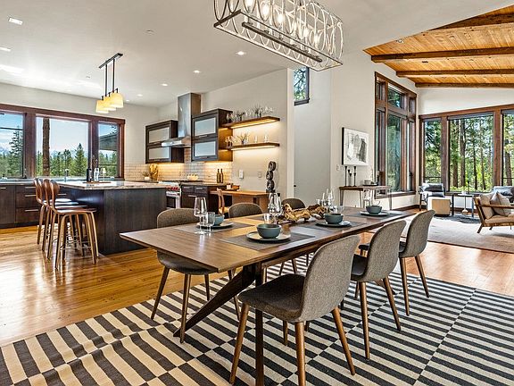 This high-end custom home near the end of a cul de sac in scenic Gray's Crossing is a testament to the timeless qualities of organic material and Craftsmanship. Floor to ceiling, the hand-crafted woodwork tells a rich and storied history that began at the Montana ranch where it was harvested. Its remarkable character blends seamlessly with a contemporary aesthetic to form the perfect fusion of Mountain Modern in this one-of-a-kind newly built home that must truly be seen to be appreciated. With views of Northstar, the open, airy kitchen flows nicely into the dining room and private rear patio, offering terrific indoor-outdoor living. Cathedral ceilings and walls of windows frame the great room, which feels like a sheltered perch in the forested setting beyond. A separate upstairs den offers space for guests or extended family to feel at home - ideal for entertaining. At the end of the cul de sac, you'll find connections to an extensive trail network that extends to downtown Truckee in one direction, and more than 250 acres of mountain bike and hiking trails heading toward Prosser Dam in the other. Ride your bike to Truckee Thursdays, or experience the solitude of quiet walks along the meadows of Spring Creek outside your front door. Golfers will enjoy the easy access to the cart path along the 6th Fairway just up the street. The cart path connection to Old Greenwood allows golfers to enjoy both courses without ever driving on I-80.