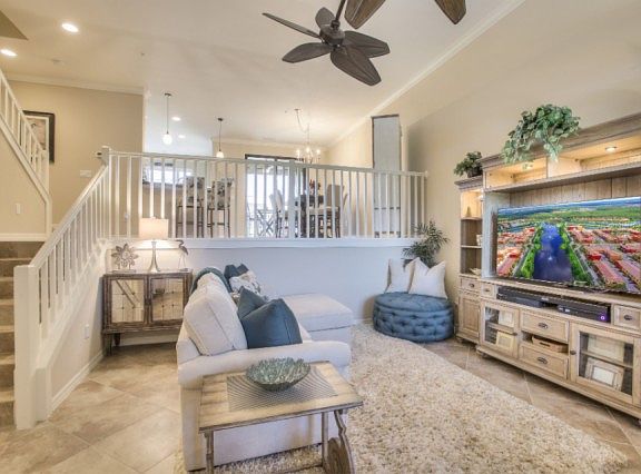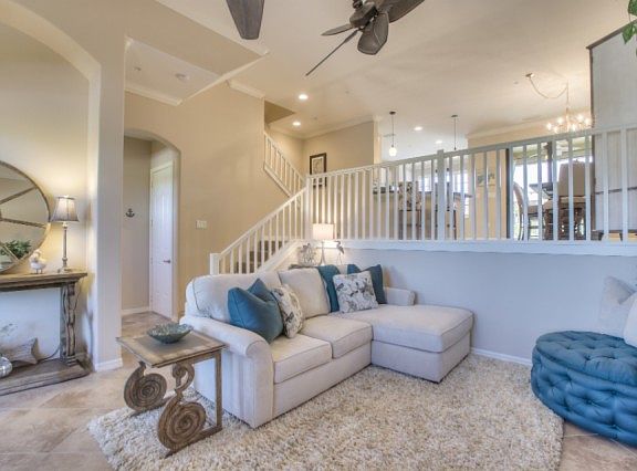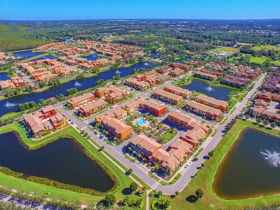 Premium lake front & located on a QUAD. With only 20 of this popular unit in all of Paseo, the Santa Cruz town home features 3 bedrooms, 2.5 bathrooms, 2 car garage, dramatic volume ceilings & 2 outdoor living spaces! Built in 2014 & steps from the amenities, this home shows like a model. Enjoy unobstructed lake views from your spacious, screened-in front porch & views of the quad area from your screened lanai. Inside the upgrades are apparent offering tile flooring, beautifully chosen cabinets & granite, custom lighting & fans, plush carpeting & more. Situated on 1 of 5 highly desirable quads, you can relax by your own semi-private pool & grilling area which is reserved only for the 40 homes that border it. Savor the colorful Spanish architecture & lush landscaping of this exciting community, known for winning community of the year Paseo is not just a community it?s a lifestyle. Lagoon & lap pools, tiki bar, kids splash area, impressive fitness center, library, movie theatre, spa, bistro, ice cream parlor, 6 har-tru tennis courts, pickleball, basketball & bocce are just some of the incomparable resort-style amenities Paseo has to offer. It?s like being on vacation every day!