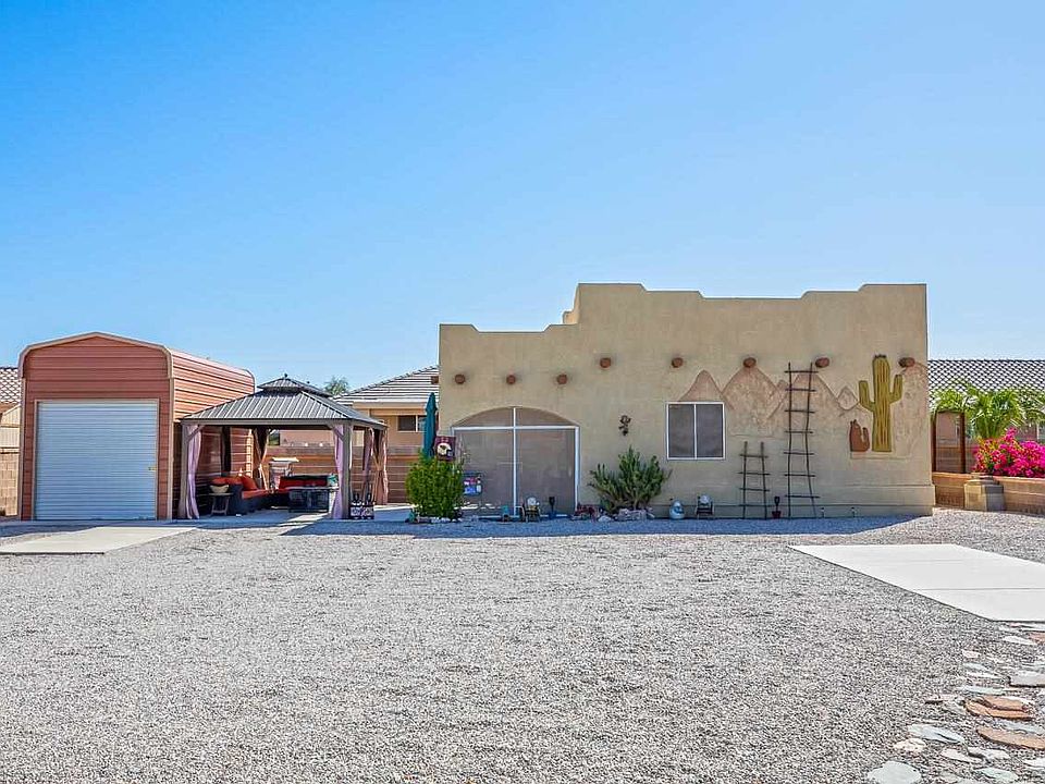 A beautiful casita on a Large 7500 sq ft multi use lot in Coyote Wash. Casita has vaulted ceilings, kitchen and 3/4 bathroom. 2 separate RV pads with 50 amp RV hookups that have separate meters. This is a great opportunity for some rental income in the winter. Includes a 20x10 metal Garage and a 20x15 gazebo for enjoying the beautiful desert weather. This one is a must see. Fully fenced and ready for new owner.
