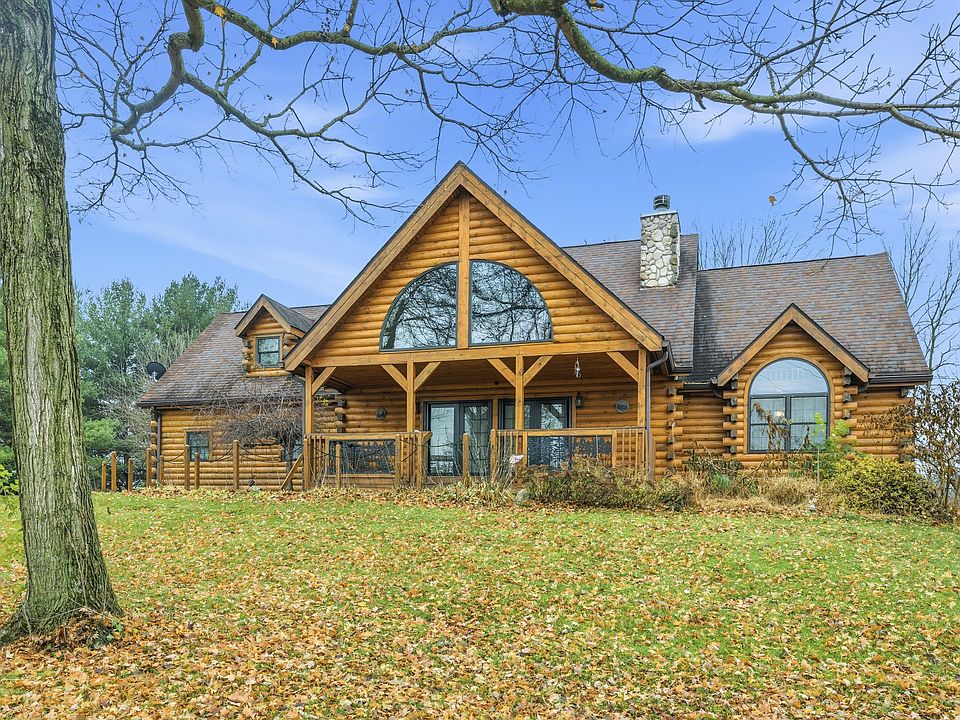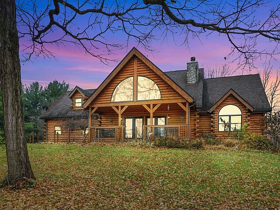 Stunning Log Home on 12 Acres with Pole Barn & Pond. Welcome to this beautifully crafted 3-bedroom, 2 full bath, 2 half bath log home offering exceptional privacy and picturesque surroundings. The main level boasts an inviting layout with vaulted ceilings, exposed beams, and a striking floor-to-ceiling stone fireplace that serves as the centerpiece of the great room. The home includes a finished basement with a dedicated office, ideal for remote work, hobbies, or additional living space. Master bedroom and bath are located on the main level. Upstairs, the bedrooms are generously sized with ample storage and a comfortable layout. Outside, enjoy 12 serene acres complete with large pole barn for equipment, workshop needs, or extra storage. A beautiful pond enhances the property's natural appeal and offers a peaceful outdoor retreat. This one-of-a-kind property combines rustic charm with modern convenience-perfect for those seeking space, privacy, and the beauty of country living. This property is conveniently located to Greenfield, New Palestine, Shelbyville, and Morristown.