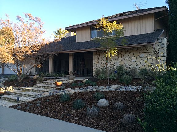 Located near an exclusive country club in Northridge is where you will find this updated 2,341 square foot, 4 bedroom, 3 bath home with a show stopping drought tolerant front yard. Flagstone steps lead up to the gated courtyard and once inside you will be impressed with the living room with its vaulted ceilings, floor to ceiling windows, updated stone fireplace and bamboo flooring. The kitchen has been completely updated with cabinetry, granite counters and stainless appliances as well as decorator lighting over the breakfast bar and recessed lighting. Adjacent to the kitchen is a roomy family room and a formal dining room. Rounding out the main floor is an updated ¾ bath and the very large 4th bedroom. Upstairs you will find a large master suite with updated bath and a lovely mountain view. 2 more bedrooms and a third updated bath with spa style tub completes the upstairs. The backyard offers up a covered patio, a very Zen like yard, a gated dog run and a sparkling pool. Additional features are newer heating and air conditioning, solar panels and a 3 car garage.