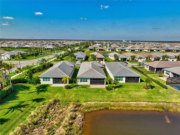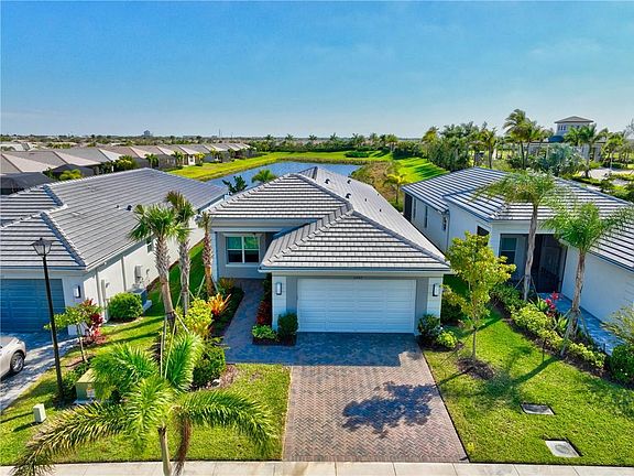 Must See! This home has never been lived in! Seller to give $5,000 credit at closing for kitchen appliances. Spacious Tribeca model with magnificent long lake view. Upgraded electrical to 300 amp service for home generator, hot tub and EV. Long term energy savings with upgraded A/C Carrier Performance Series and upgraded R30 attic insulation. All quartz countertops, crown molding and upgraded kitchen cabinets w/lighting. Tankless water heater system saves space and energy costs. Electronic remote control blinds, hi hats thru-out home. Jetted bathtub in MB. Comfort height toilets, widened walkway, extended lanai. Much more! Converted to electric oven, dryer. Active 55+, 34,000 sq. ft. social clubhouse, resort style swimming pool, restaurant, tennis, bocce ball, pickleball, fitness center. SEE ATTACHED DOC FOR LIST OF UPGRADES