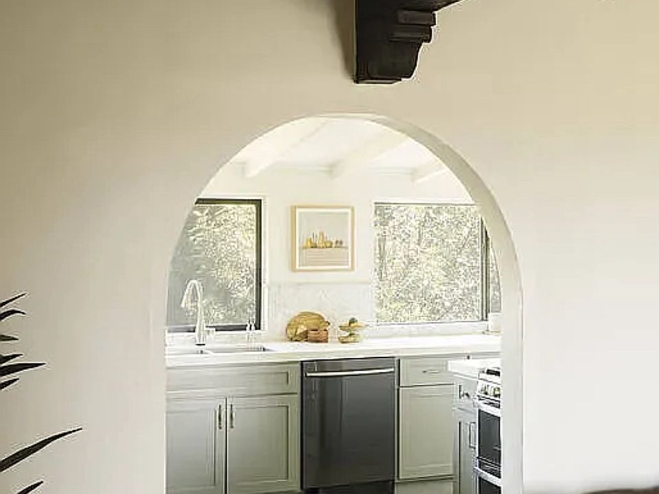 The newly renovated kitchen is both stylish and functional, outfitted with custom cabinetry, Caesar-stone countertops, and new modern appliances. A cozy breakfast nook enjoys serene canyon views, making mornings all the more inviting.