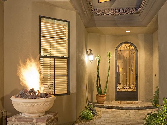 BACKYARD MOUNTAIN VIEWS. Combine old world detailing w/ modern amenities including state-of-the-art kitchen, located in an exclusive, gate enclave of 20 single-fam, luxury homes w/ a contemporary Tuscan design. Built in 2005, these original owners paid the highest lot premium ($65K) to have most private lot w/ BEST views & chose all the BEST upgrades in this greatroom home: Wolf cooktop & double ovens, 42 Stainless Sub-Zero fridge & wine cooler, glazed Alder cabs, level 5 granite, 20 Tuscan tile, domed ceilings, arched niches, pedestal firepits, classic columns. Too many to list, see documents for upgrades. Outdoor living just as good w/ stunning PebbleTec pool w/ waterfall, hand laid paver courtyard & patios, built-in natural gas BBQ w/ tumbled travertine tops. Dont miss virtual tour!