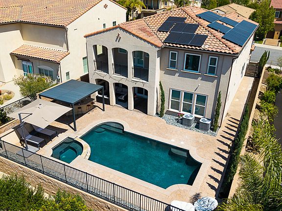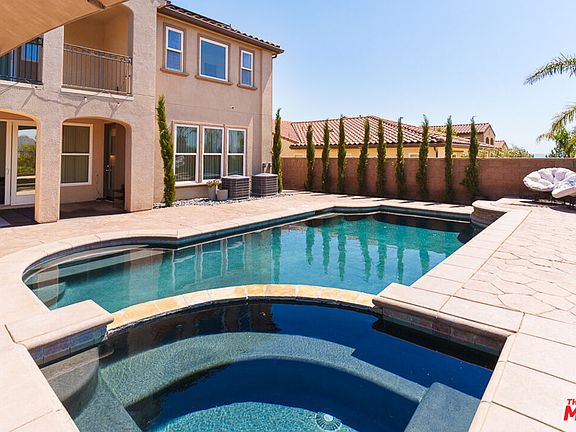 Stylish Spanish Home in Gated Bella Vista. Located near the top of Ricasoli Way in the prestigious Bella Vista community, this beautifully updated two-story Spanish-style home offers seamless indoor-outdoor living and canyon views. The first floor features a guest suite, formal dining room, spacious living room, and a newly remodeled kitchen with island and eat-in areaall opening to a California Room with outdoor fireplace.The backyard is perfect for entertaining with a built-in BBQ, pool, and spa. Upstairs includes four bedrooms and three bathrooms, including a large primary suite with a private balcony, spa-like bath, and walk-in closet.Additional highlights: extended 3-car garage, community pool, kids' pool, community center and 24 hour security guard. House is located just a 5-minute walk from a brand-new playground in Porter Ranch.