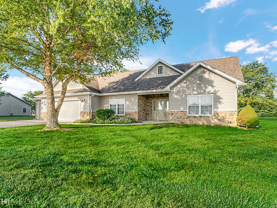 Welcome Home to this lovely Ranch with a split floor plan. 3 Bedrooms and 2.5 Baths. Large Living Room features new carpeting, a Gas Fireplace and a Cathedral Ceiling. The Formal Dining Room (or possibly an Office) features Beautiful Hardwood Flooring. Nice-Sized Kitchen includes all appliances and the flooring is ceramic tile. The Primary Bedroom is Handicap accessible, has new carpeting, large walk-in Shower (9.6 x 3.6) and a walk in closet. Bedrooms # 2 and #3 both have new carpet and share another full Bath. HUGE 3 Car Garage. Nice ONE ACRE Lot located near schools, shopping and restaurants. Easy access to work or play.