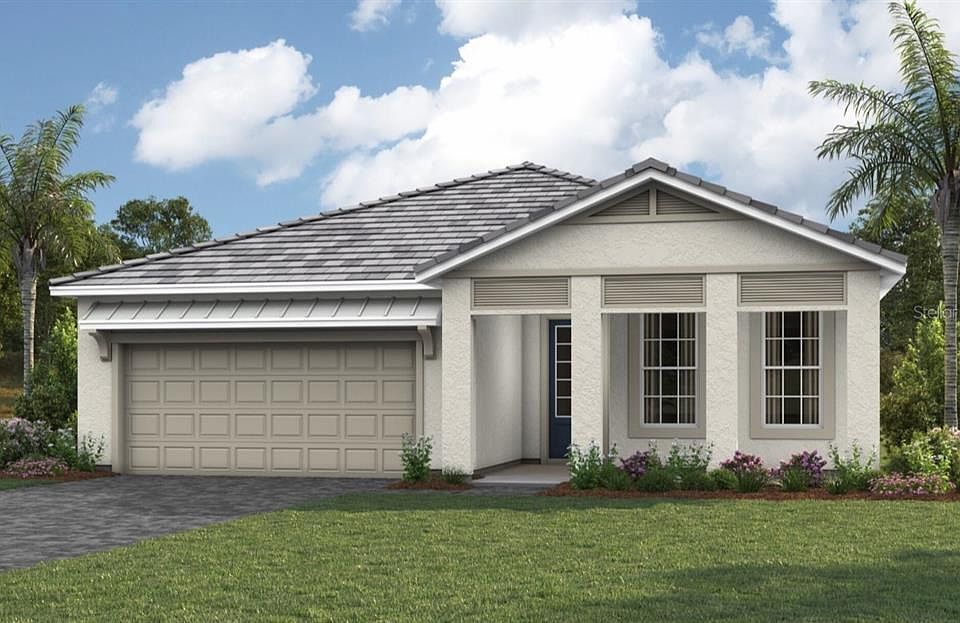 The Dayspring is a thoughtfully designed one-story home offering 2,296 square feet of stylish living space in Lakeside at Sunstone. The kitchen is a standout, with cabinetry lining two walls, 42" upper cabinets in a soft linen finish, and quartz countertops in a contrasting Soapstone hue. A Whirlpool stainless steel appliance suite includes a slide-in gas range with seven cooking modes, a quiet ENERGY STAR® certified dishwasher, and a side-by-side refrigerator with exterior ice and water dispenser. The open layout flows seamlessly into the dining area and Great Room, creating a bright and welcoming space for everyday living or entertaining. The owner’s suite is tucked away for privacy and features two oversized walk-in closets, dual raised vanities with cushion-close cabinetry, and a spacious step-in shower with frameless glass enclosure. The second bedroom and bath are positioned at the front of the home, offering a private retreat for guests or family. A dedicated study with 8' double doors provides a quiet space for work or hobbies. Outdoor living is elevated with a covered lanai overlooking a peaceful pond—perfect for relaxing or dining al fresco. The front porch adds charm and a neighborly vibe with space for seating. Located in Lakeside at Sunstone, a gated enclave within Wellen Park, residents enjoy access to two lakefront amenity centers featuring resort-style pools with lap lanes, a fitness center, pickleball courts, game rooms, multi-purpose spaces, event lawns, and a full calendar of activities curated by a dedicated Lifestyle Director. Just minutes from Downtown Wellen Park, CoolToday Park, Costco, and Gulf Coast beaches, this home blends comfort, convenience, and vibrant community living. *** Photos, renderings and plans are for illustrative purposes only and should never be relied upon and may vary from the actual home. Pricing, dimensions and features can change at any time without notice or obligation. The photos are from a furnished model home and not the home offered for sale.