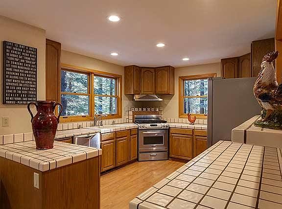 Delightful cabin nestled in the trees! Spacious 3 bedrooms, 2.5 bath retreat on deep .43 acre lot, adjacent to greenbelt, very private setting on a deep lot. Nicely maintained, updated & move-in ready, the open floor plan has a cozy living area, spacious kitchen, large dining room, abundant windows and separate laundry. Upstairs is huge master suite, 2 more bedrooms & bath. Great indoor/outdoor living in a wonderful mid-range elevation with easy access to Trout Creek Rec Center. HUGE garage is a bonus!