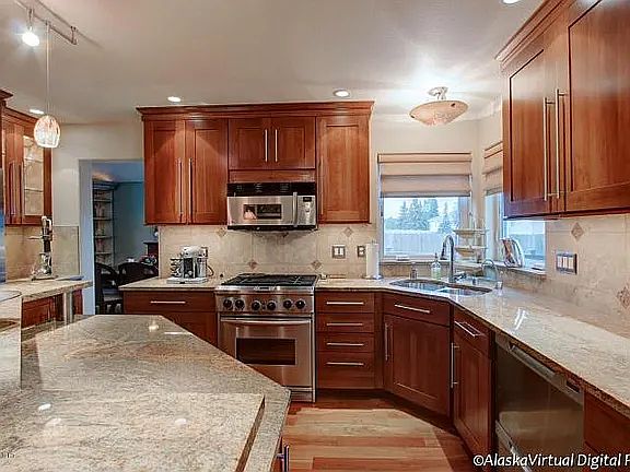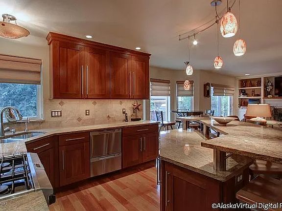 Better than new! This home has had a complete remodel. Granite countertops throughout, Engineered American Cherry Flooring, built-ins in the family room, living room and Master. New lighting, triple pane windows, California Closets in the entry, downstairs bedroom and master, 2 gas fireplaces Long Time And Short Term