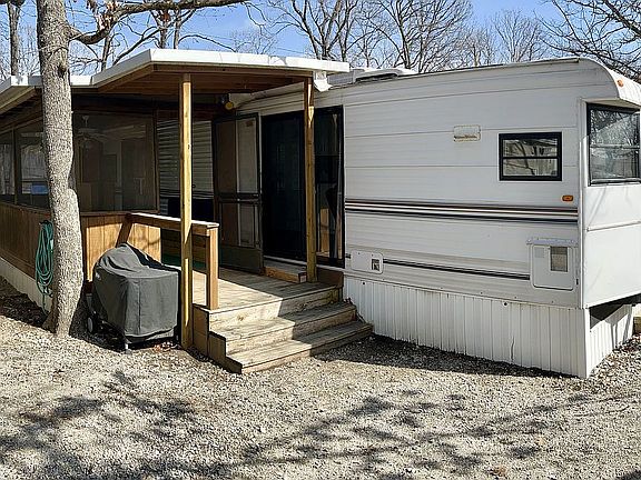 Welcome to Lake Life! Just minutes from Truman Lake! Newly remodeled from top to bottom in 2021! Move in ready! Modern farmhouse design with luxury vinyl flooring throughout. This Hy-Line Park model is 39.5’L x 8’W with 2 large slide outs to extend the living area. Attached is a large, covered screen porch with a 3 inch insulated metal panel roof (24’L x 9’W), and covered front deck. It is a great place to relax after a exhilarating day of water skiing or fishing! Comes with all appliances (gas stove/cook top, dishwasher, full size refrigerator, microwave, new washer (2022), and dryer). The unit has a gas/electric water heater, air conditioner, propane furnace, and 2-large propane bottles. Trailer sleeps 6 comfortably, with added furnishing. Located at Blueberry Ridge RV Resort on Lot #48. This unit is skirted, to keep leaves out. On a large, shaded lot. A great place to park your boat, truck, and any other recreational vehicle you own. Lot rental includes POOL, playground, community storm shelter, fish cleaning station & trash service.