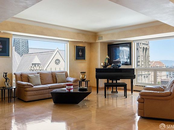 Not your average listing. Not your average life. Perched high above Nob Hill in the most coveted stack of the iconic Gramercy Towers, this luxurious 2-bedroom, 2-bath sanctuary on the 12th floor offers a rare blend of classic San Francisco elegance and modern indulgence. With sweeping north-eastern views that frame Grace Cathedral, Huntington Park, and the stately Fairmont Hotel, every window is a postcard, and every moment feels like a scene from a film. Step inside to discover an oversized living space designed for both quiet mornings and grand evenings. The interior features custom-made cabinetry and bespoke furnitureall includedthoughtfully crafted to elevate both form and function. Every detail whispers sophistication, from the seamless layout to the subtle finishes that let the views do the talking. But this isn't just about what's inside. The Gramercy lifestyle is full-service at its finest. With a 24-hour concierge, your needs are always anticipated. Whether you're returning from a night at the opera or a jog through the park, unwind with a dip in the heated pool, soak in the hot tub, or recharge in the fitness center and saunaall just an elevator ride away. And yes, secure parking is included, because convenience should never be optional.