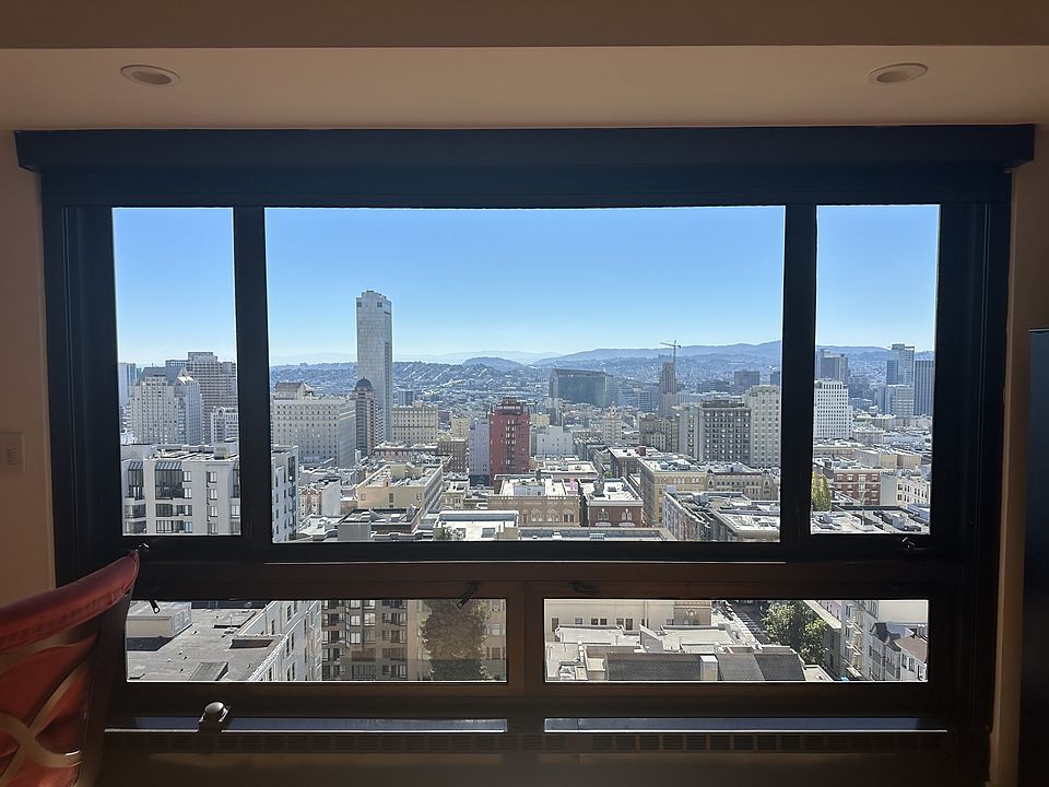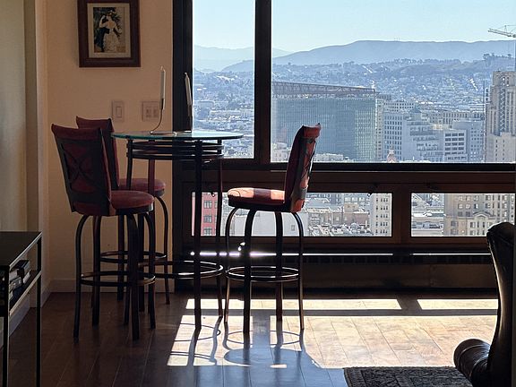 Experience refined luxury at the top of Nob Hill in this impeccably renovated designer condominium at the prestigious Gramercy Towers. Blending modern comfort with timeless elegance, this residence captures sweeping southern vistas and the quintessential San Francisco skyline.A dramatic granite entry leads into a sun-filled living space framed by floor-to-ceiling windows. The open layout includes a floating office, ideal for work or quiet reflection, while twin crystal chandeliers set a tone of understated glamour.The chef's kitchen features illuminated stone countertops, newer, state of the art appliances, a rich designer backsplash, custom cabinetry, and thoughtful details throughout. Walnut-toned engineered floors, recessed lighting, and double-insulated, soundproofed walls and ceilings ensure a serene environment.The spa-inspired bath showcases a marble shower with glass doors, a Toto toilet, towel warmer, and a tall, mirrored medicine cabinet.Additional highlights include: two cedar-lined California Closets, custom bedroom shelving, a concealed technology hub with hidden wiring, eight HOA-approved ceiling speakers, and automatic dual day/night blinds.Enjoy full-service living with 24-hour concierge, fitness center, indoor pool, spa, sauna, and an on-site steakhouse.Rent includes heat, electricity, cable TV, internet, and earthquake insurance. Easy accessibility to transportation, shopping, restaurants, the financial district, and Union Square.In building, garage parking can be arranged for additional monthly charge via the property management/front doormen. Please inquire if needed.