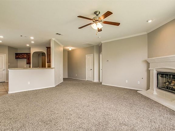 Stunning one story D R Horton home situated in the highly sought after Sendera Ranch Addition features 3 Beds & 2 Baths! The split bedroom floor plan and optimal use of space create privacy for the Master Suite that features a garden tub, separate shower, dual sinks, closed-in commode, and a spacious walk-in closet. Recently installed carpet and neutral paint highlight an open-concept floor plan that allows for a free flow from Kitchen (with island, walk-in pantry, & gas appliances) to living room complemented by arched window accents throughout the home. Relax next to the gas fireplace with a great view (Thanks to an abundance of windows and natural light!) into your backyard complete with covered patio!
