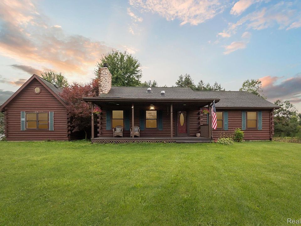 Bring your imagination! This 4 bedroom, 2 bathroom home needs your finishing touches. Large open floor plan with vaulted ceiling in the great room that is perfect for entertaining. Spacious primary bedroom w/vaulted ceiling accompanied by walk in closet and primary bathroom. 3.41 acres with pond. MASSIVE 30 x 60 (8 car) pole barn with cement floor and 3 roll up garage doors. This property offers a rare combination of a log exterior home, pole barn, and land! Make this house your HOME!