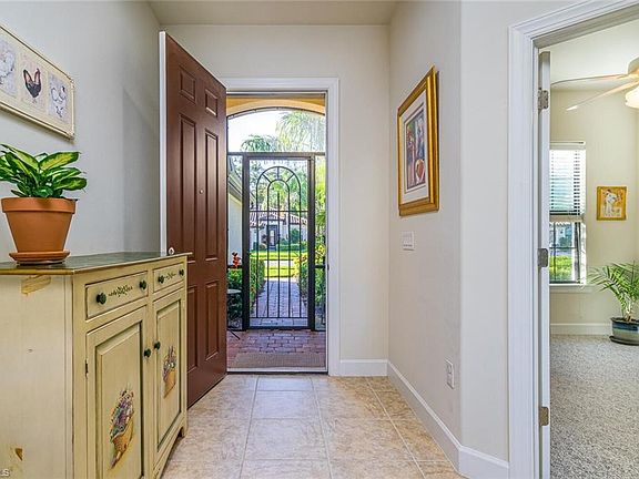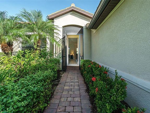 Stunning long lake view villa in the active and vibrant community within Bridgetown Plantation. This villa is located just a quick walk to the amenities center offering pool, tennis, gym, bocce plus much much more. Meticulously maintained 2 bedroom plus a den and 2 full bathroom home with Impact Glass windows for the entire home. The kitchen offers granite counter tops with a large extended island. Crown Molding and undermount lighting on all upgraded kitchen cabinets. The lanai has been extended offering more then amble space to enjoy the lake views. A landscape package including palms, orchids, and hibiscus all add to create a private and enjoyable setting from your lanai. Other upgrades include a screened in front entrance, whole house water filtration system, built in storage garage cabinets, ring doorbell, security cameras, Stormsmart shade screen on lanai, trey ceiling in master bedroom and washer/dryer included. Bridgetown Planation is a new and growing community located along Treeline Rd offering spacious bike and running walk ways. Come enjoy your piece of paradise.