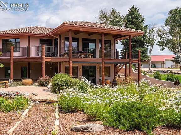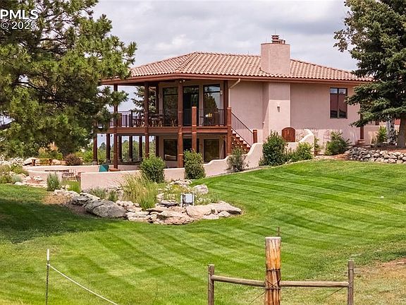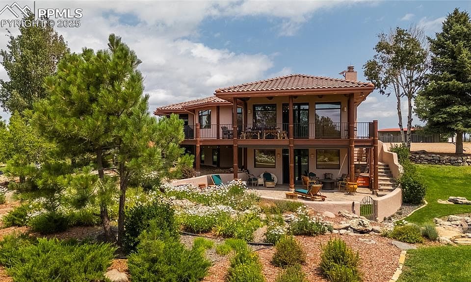 37.5 acres overlooking the Cherry Creek Valley of Douglas County. Location offers a serene and secluded lifestyle. Pine-covered ridges, rolling hills, and level hay meadows, all with views of the Douglas County hills and Rocky Mountains. Main home is custom built Santa Fe style stucco and log accent home, that boasts 4,480 finished square feet of living area. The home has four large bedrooms and four bathrooms. The main level features a large custom kitchen with a Subzero refrigerator, a Thermador 6 burner gas stove top and a double oven, granite counter tops, and a custom granite sink. The main floor living room features a custom Santa Fe style fireplace and walks out to an enormous western facing deck with log accents. The large master suite wing of the house has a Kiva style fireplace and an incredible custom 5 piece master bathroom and a spacious walk-in closet. The laundry is on the main level as well as the attached oversized 4 car garage. The fully finished basement features three large bedrooms and two full bathrooms, a family entertainment room with a wet bar. The basement family room walk out onto a large patio and wonderfully landscaped yard. The home boasts numerous custom touches. The manicured yard includes over a quarter acre of underground automatic sprinklers, extensive landscaping, and a Koi Pond with fish. The home is heated with in-floor radiant heat. Also included are a 36×48 six stall heated and insulated horse barn with six 12×12 stalls along with 6 Priefert turnout runs and 2 Priefert dog runs. Also included is a 72X42shop building with high ceilings and 4 overhead doors of 8 ft, 12 ft and 14ft in height. The shop includes a loft storage area and a heated and cooled exercise workout room. East 16 acres is level dry land tillable farm ground, ideal for hay production. West portion is grazing with Ponderosa Pine covered hills. East Cherry Creek valley in Douglas County, within one hour of both Denver and Colorado Springs.