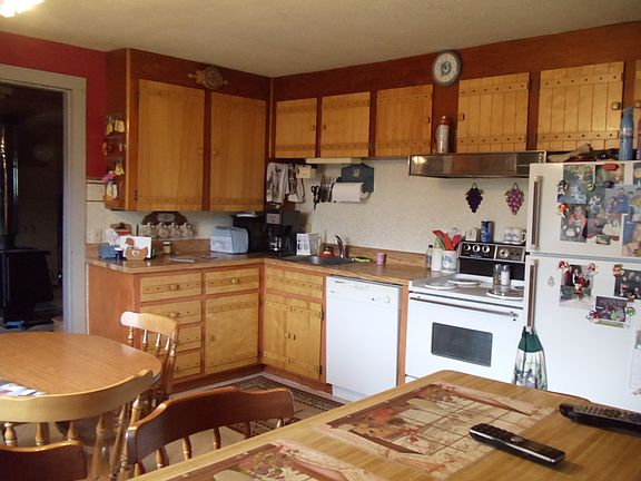Country style 2bd, 1bth ranch home just across from Applegate River. Only the 2nd owner. The 1,205sf incs. 2-car garage w/double doors & tons of add'l parking. Large Den + a standing DEQ certified wood stove that heats the home very well. Beautiful custom wood cabinets throughout kitchen & den + wood paneling on the walls. Open floor plan. Sliding glass doors lead out to a porch & fenced yard. Perfect for dogs, kids or a BBQ area. Fuel reductions for all 6.51 acres completed. Fenced pasture w/animal stalls, chicken coup, & fruit/nut trees. Property has previously been used as a mini farm. Roof is in good shape. Property is currently in the process of being cleared & packed up but over all in good shape. Don't let the pictures fool you. Home is clean & well maintained! Rear storage shed & an add'l storage area are built onto the house w/shelving perfect for canned goods/extra storage. Beautiful views of the mountains & sky. Don't miss the opportunity to see this well cared for home.