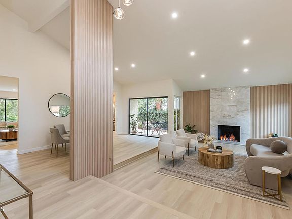 Have you been waiting for a beautifully remodeled SINGLE-STORY Porter Ranch home that checks every box - soaring ceilings, modern finishes, and seamless indoor-outdoor living perfect for entertaining? This one delivers it all - and more. Opportunities like this are rare… and they go FAST. This stunning 4-bedroom, 2-bath home offers approximately 2,258 sq ft of upgraded living space in one of Porter Ranch’s most desirable neighborhoods. Step inside to be awed by the soaring 18-foot vaulted ceilings, flooding the home with light and creating a remarkable sense of openness. Brand new luxury vinyl plank flooring and fresh interior paint enhance the bright, airy feel throughout. The large living room features a striking fireplace, while the oversized formal dining room is perfect for memorable gatherings. At the heart of the home, the open-concept chef’s kitchen and family room flow seamlessly together, anchored by custom built-ins and a sleek wet bar. Floor-to-ceiling glass sliders open directly to the backyard, creating effortless indoor-outdoor living under the covered patio - ideal for entertaining or relaxing in style. The remodeled kitchen is a true centerpiece, packed with upgrades: custom soft-close cabinetry with abundant storage, quartz countertops, stainless steel appliances, a stylish tile backsplash, and a large breakfast bar. Every detail blends luxury and functionality. Enjoy morning coffee or intimate dinners in the charming side-yard patio off the dining room.