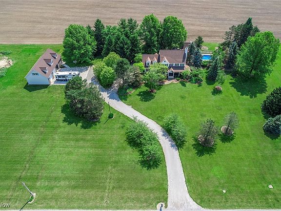 Tucked away on 2.74 private, wooded acres with picturesque views that feel like your very own park, this stunning 3-story home offers space, style, and serenity in the desirable Firelands School District. Designed for both daily comfort and exceptional entertaining, the open-concept first floor was professionally redesigned and remodeled by an architect and designer in 2014, complete with a thoughtful addition. The gourmet kitchen is a true showstopper, featuring beautiful custom cabinetry, granite countertops, a spacious island, extended breakfast bar, built-ins, and lighted glass cabinets—all bathed in natural light that brings the outside in. The first floor also features an adjacent living room with fireplace that adjoins kitchen and dining area opting for great entertaining space plus a full custom-designed bath, and a smartly placed laundry area for everyday ease. Upstairs, the luxurious primary suite includes hickory flooring, a spa-like custom bath, and a walk-in closet with built-ins and shelving. Two more bedrooms and a family room with its own fireplace. and another full bath complete the second floor. The third floor provides even more flexibility with a fourth bedroom and an additional bedroom if needed or a flex space for office, exercise or craft etc. A full basement adds storage or additional living potential. Step outside to your personal retreat: a 20x26 covered patio, heated in-ground pool, pool house with pump room, firepit area, and a 32x60 outbuilding with three 12-foot doors and attic space. This extraordinary property truly has it all—privacy, elegance, and resort-style amenities, all just minutes from town.