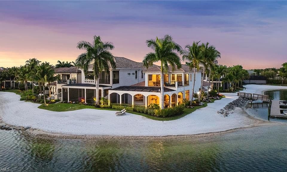 Welcome to this breathtaking residence in the exclusive Costa Amalfi neighborhood of Miromar Lakes, where luxury living meets timeless elegance. Ideally situated on a premium corner lot, this home offers unmatched wrap-around views of the shimmering lake and sandy beach, creating an ever-changing backdrop of beauty from sunrise to sunset. Step inside to discover a thoughtfully designed floor plan that balances sophistication with comfort. The first floor showcases a lavish master suite, offering a serene retreat with its spa-like bath and private views. An open-concept kitchen and living area provide the perfect space for everyday living, featuring high-end finishes, abundant natural light, and seamless indoor-outdoor flow. A private guest suite with an en-suite bath on this level ensures comfort and privacy for visiting friends and family. An elevator effortlessly transports you to the second floor, where two additional en-suite bedrooms await, along with a versatile loft ideal for a home office, media space, or reading nook. The expansive balcony invites you to unwind while overlooking the tranquil waters, the perfect spot to soak in Florida’s breathtaking sunsets. The home’s sought-after southwest exposure ensures natural light fills the interiors throughout the day, enhancing its warm and welcoming ambiance. Entertaining is made easy with a sophisticated wet bar on the main level, creating an inviting setting for hosting gatherings both large and small. Life in Miromar Lakes means more than just a beautiful home—it’s an unparalleled lifestyle. Residents enjoy access to a 10,000-square-foot zero-entry infinity pool, endless water sports on 700 acres of freshwater lakes, a full-service spa, a cutting-edge fitness center, and an array of dining options including the waterfront Blue Water Grill. Tennis, pickleball, and miles of white-sand beaches further enrich the resort-style experience, making every day feel like a vacation. This extraordinary property presents a rare opportunity to own a piece of paradise in one of Southwest Florida’s most coveted communities. Schedule your private showing today and experience for yourself the beauty, luxury, and lifestyle that only Miromar Lakes can offer.