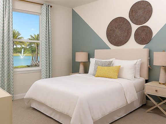 From the welcoming front porch to the expansive rear lanai, the 2,005 sq. ft. Glades floorplan offers a seamless blend of indoor and outdoor living. This thoughtfully designed home features 3 bedrooms, 2 full baths, a flex room, and a 2-car garage, all arranged around a spacious open-concept living area ideal for entertaining or relaxing. The L-shaped kitchen showcases wood inspired tile flooring, shaker-style cabinetry in a soft linen hue, and quartz countertops, reminiscent of natural soapstone. A generous island with a breakfast bar anchors the space, complemented by a gas range with seven cooking modes, perfect for culinary enthusiasts. The corner pantry offers ample storage for small appliances, while the Whirlpool stainless steel appliance suite includes a slide-in gas range, quiet dishwasher, microwave, and a counter-depth 4-door refrigerator. The flex room provides a versatile space for work, hobbies, or study. The owner’s suite features a luxurious bath with a frameless glass shower, dual sinks, and a walk-in closet. Bedrooms 2 and 3 are tucked at the front of the home for added privacy, with a full bath conveniently located between them. Step through 12' upgraded glass sliders to the oversized lanai, overlooking a tranquil pond—ideal for dining al fresco or lounging in the breeze. Located in Lakeside at Sunstone, a gated enclave within Wellen Park, residents enjoy access to two lakefront amenity centers featuring resort-style pools with lap lanes, a fitness center, pickleball courts, game rooms, multi-purpose spaces, event lawns, and a full calendar of activities curated by a dedicated Lifestyle Director. Just minutes from Downtown Wellen Park, CoolToday Park, Costco, and Gulf Coast beaches, this home offers the perfect blend of comfort, style, and vibrant community living. *** Photos, renderings and plans are for illustrative purposes only and should never be relied upon and may vary from the actual home. Pricing, dimensions and features can change at any time without notice or obligation. The photos are from a furnished model home and not the home offered for sale.