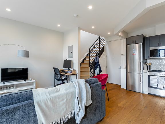 This stunning, sun-drenched 1-bedroom duplex is located on the top floor of a well-maintained walk-up building in the heart of Bushwickjust two blocks from the Knickerbocker Ave M train station as well as five blocks from the Kosciuszko St J train station.