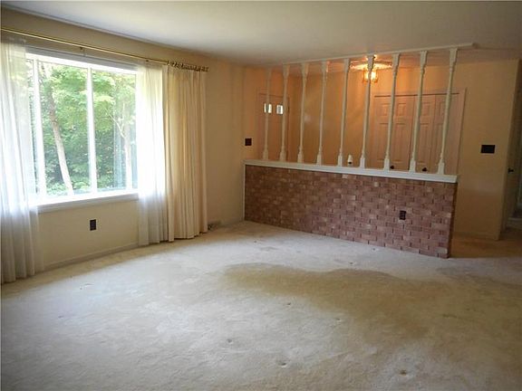Brick three bedroom raised ranch on five private acres. Beautiful sunroom addition with skylights is a most welcoming space. Large eat-in kitchen. Family room on lower level has sliding glass dor to patio and pellet stove. The 11x13 room on lower level could be a fourth bedroom or an office. There is also a "clubhouse" behind the garage which could be a children's playhouse or used for storage. The huge three bay garage has ample depth for a workshop. Both the house and garage had new roofs in 2012.