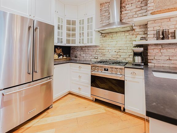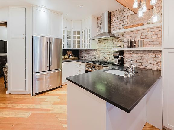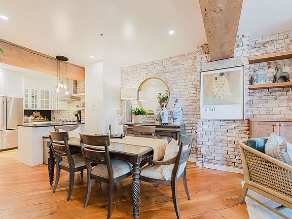 Soaring douglas fir columnsExposed brick wallsReclaimed wide-plank fir floorsGenerous dining areaCustom cabinetryAmple pantry spaceNew high-end smeg appliances