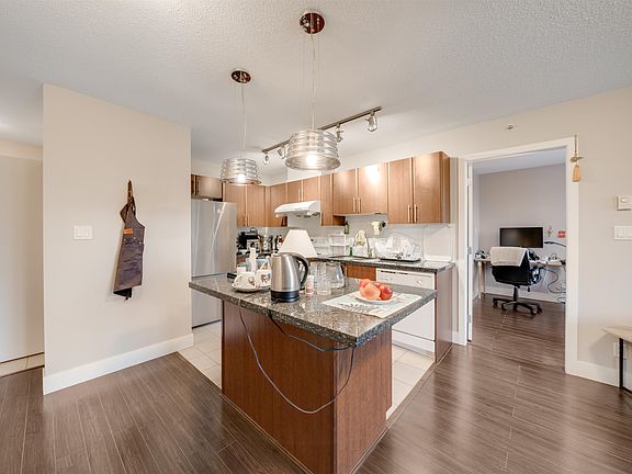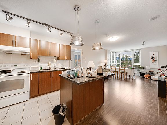 Bright and spacious 2-bed + den corner home featuring an open layout, floor-to-ceiling windows, and sweeping city and mountain views. The modern kitchen offers stainless steel appliances, ample cabinetry, and a functional breakfast bar. Bedrooms are thoughtfully separated for privacy, and the den is perfect as a home office. Enjoy two full bathrooms, in-suite laundry, and a covered balcony ideal for relaxing or entertaining. Located steps to Coquitlam Centre, SkyTrain, parks, and restaurants—convenience and comfort in one elegant package.