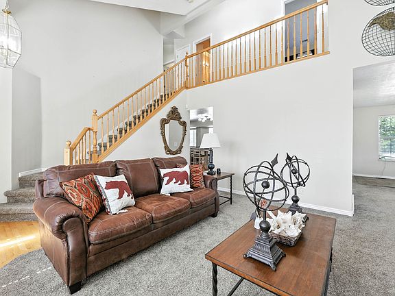** $10,000 Buyer Incentive Towards Closing Costs, Rate Buy-Down and/or Property Enhancements (contact agent for details) ** Wonderfully Charming Home with tall and sizable 4-Car Tandem Garage, Large Primary Suite, and Fenced Backyard! Nestled on a cul-de-sac lot in a quiet neighborhood, this incredible residence offers overflowing curb appeal with stately exterior brick accents, gorgeous landscaping stones, and a neatly manicured lawn. Soaring vaulted ceilings and abundant natural light impress, as the spacious living room beckons easy conversations by the warmth of the fireplace. Explore further to discover an open concept kitchen, which has white appliances, center island, and breakfast nook. Joyfully host both casual and formal affairs in the adjoining family room or formal dining room. Ideal for substantial furnishings, the upper-level primary bedroom dazzles with vaulted ceilings, newer carpet (2023), multiple closets, and an attached en suite. Two additional bedrooms and one full bathroom and one half bathroom afford comfortable accommodations for family or guests, while flex space needs are satisfied in the full unfinished basement. Relish in the possibilities of the fully fenced-in backyard. Featuring a sprawling paved patio, covered patio, ample greenspace, and built-in firepit, there are plenty of areas for entertaining. Other features include: RV parking, 2nd floor laundry room, NEWER carpet throughout (2023), NEWER bathroom floors (2023), alarm system, video doorbell, video cameras, projector screen, owned water softener, NO HOA, near tennis courts, soccer field, schools, and shopping, and more! Schedule your tour private tour today!