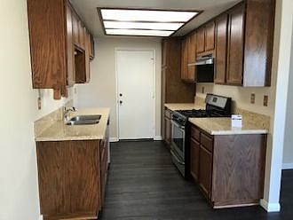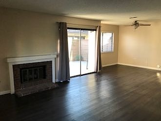 2 Bedroom, 2 1/2 bath condo (Dual masters with balcony). Both rooms have walk-in closets and private baths. Granite counter tops in the kitchen with refrigerator, stove/oven and microwave. Upstairs laundry room with washer/dryer included, central air, 2 fireplaces (1 in master bedroom and 1 downstairs, hardwood type floors downstairs, 2 car attached garage with direct access, private backyard with patio, community pool & spa. Plenty of guest parking. Close to freeway and shopping. This is a non-smoking property and there are no pets allowed.