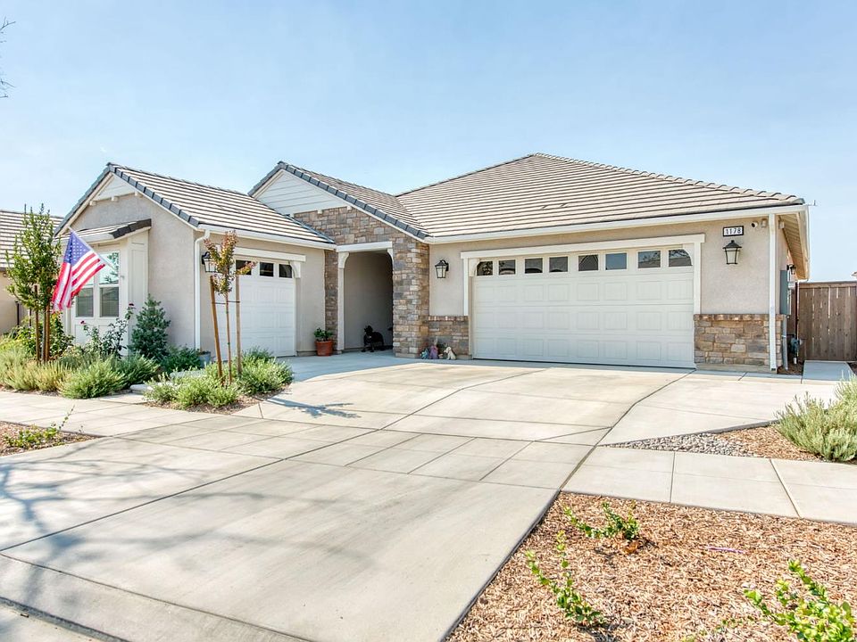 Gorgeous 2024 Willow Model in Tesoro Viejo - 3BD/2BA, 2,290 sq ft, and move-in ready with $55K in upgrades. Features include an open-concept living area, gourmet kitchen with butler's pantry, large primary suite with walk-in closet, and spacious laundry room. Tall ceilings, tile flooring, recessed lighting, and ceiling fans throughout. Enjoy a landscaped backyard with a covered patio, fruit trees, and drought-resistant front yard. Extra-wide side yard offers room for a boat or trailer parking. The 2-car garage offers built-ins plus a 3rd garage for storage or future conversion. Energy-efficient with Owned NEM 2 Solar, tile roof, and electric water heater. Washer, dryer, fridge, security cameras, and alarm system included. Tesoro Viejo offers resort-style living with HOA internet, pool, clubhouse, coffee hub, scenic trails, new schools, and more, just steps from the San Joaquin River. Seller is open to buyer concessions making this stunning home an even greater value!