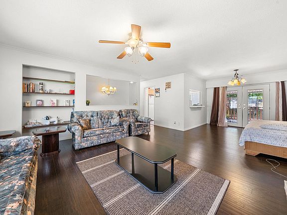 Open-concept layoutSkylights in the kitchenEntertainment-style patioFrench doorsAttached garageWorkshop spacePrivate backyard