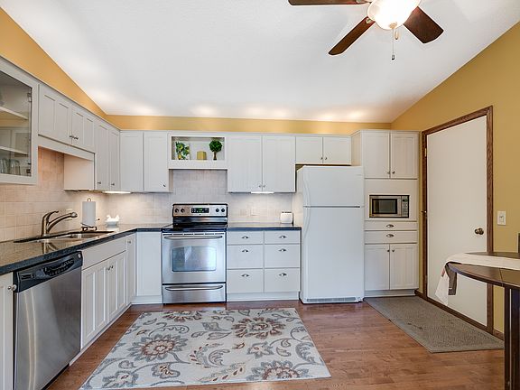 Don't miss out on this hard to find 1 level townhome in the heart of Maple Grove. Features and open floorplan with vaulted ceilings, granite countertops, updated custom cabinets, new flooring, spacious walk in closets in both bedrooms, fresh paint & newer washer & dryer. This townhome is conveniently tucked away in a quiet neighborhood, close to parks, walking trails, shopping, restaurants & more. You will see that this turnkey home has been lovingly cared for and well maintained.