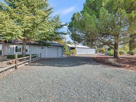 Rustic Country 10 Acre Estate first time on the market! Step into timeless tranquility with this established and maintained home, with just a little TLC needed. Beamed ceilings, newer windows, and an open floor plan with both family and living rooms ideally for entertaining. Lots of natural lighting, cabinets, countertops with views to the west. Kitchen has been updated with Corian like countertops, stainless steel dishwasher and painted cabinets. Additional mud room that was previous used for hobby room, indoor/outdoor gathering area and/or kitchen/canning area. Outside covered BBQ area for outdoor summertime living and weekend gatherings. Nice Red Barn with power, wood stove heat and cement flooring. A super sized shop for all the farm equipment that will hold your semi's, RVs, workshop with inground pit for working on vehicles. From livestock to woodworking to storage; you have plenty of space here! Grounds are mature; offers trees for shade and privacy, gardens and walking paths invite peaceful strolls and outdoor enjoyment. Irrigation well.