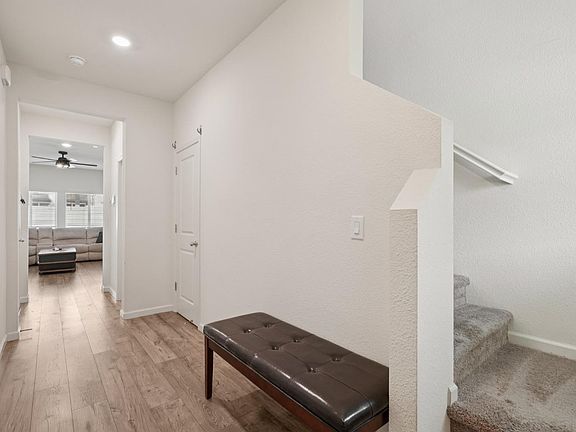 This turn-key home, built by D.R. Horton, features 4 bedrooms and 2.5 bathrooms. Inside, an open-concept layout, connecting the kitchen and living room with luxury vinyl plank flooring and a lot of windows capturing the natural light to fill the rooms. The home includes window blinds throughout, LVP flooring, white shaker cabinets, recessed lighting, and spacious bedrooms. The kitchen is appointed with a freestanding gas stove, stainless steel appliances, quartz countertops, dining area, and a center island. The oversized primary suite offers a large walk-in closet, a vanity with double sinks, and a walk-in shower. The upstairs laundry room includes shelving and a window for natural light. Outside, you will find a low maintenance backyard patio. The community offers clubhouse, pool, gym, exercise room, and tennis court. HOA included the internet. New owners will appreciate energy-efficient such as dual-zone thermostats, a tankless water heater, and solar panels. Conveniently located just minutes from shopping and dining.