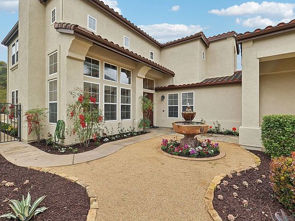 This stunning 5-bedroom, 4.5-bath Rolling Hills Residence offers a spacious, versatile floor plan blending elegance with everyday comfort. A tranquil courtyard with a water feature sets the tone for this exceptional retreat. Inside, the grand entry and striking staircase lead to an open, light-filled layout. The formal living room boasts soaring windows and a fireplace, while the dining room features an elegant tray ceiling. The oversized kitchen offers ample cabinetry, a pantry, a center island with breakfast seating, and stainless steel appliances. A generous dining area with a built-in desk connects to the inviting family room with a fireplace and custom built-ins. The main level includes a private ensuite bedroom, ideal for guests or multi-generational living. Upstairs, the luxurious primary suite has a private balcony with stunning mountain views, a spa-like bath with dual vanities, a soaking tub, a walk-in shower, and a large walk-in closet. Three additional bedrooms, including a second ensuite, plus an office, full bath, and study nook complete the upper level. The resort-style backyard features multiple seating areas, a pool, spa, firepit, outdoor kitchen, and sport court—an entertainer’s dream! A large laundry/mudroom and a four-car garage (2-two car garages) with storage add convenience. Fresh paint and new carpeting make this home move-in ready. Close to top-rated schools, shopping, trails, and freeway access—don’t miss this Rolling Hills gem!