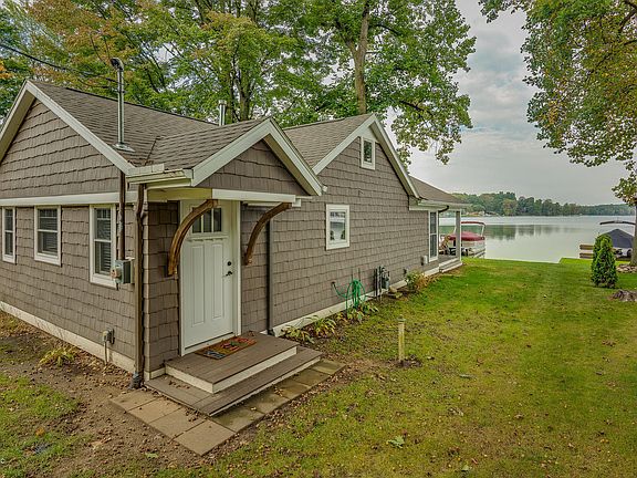 This charming 2-bedroom, 1-bath, 875-sq ft cottage offers magnificent views of Clear Lake. The open-plan living area has large lakeside windows and French doors that open onto a broad covered deck. The house is just steps away from the sandy shore with a shallow entrance and a private dock. The kitchen has stainless appliances and breakfast bar seating. In addition to two bedrooms on the main level, a loft provides more sleeping space. The property includes a storage shed and plenty of off-street parking.