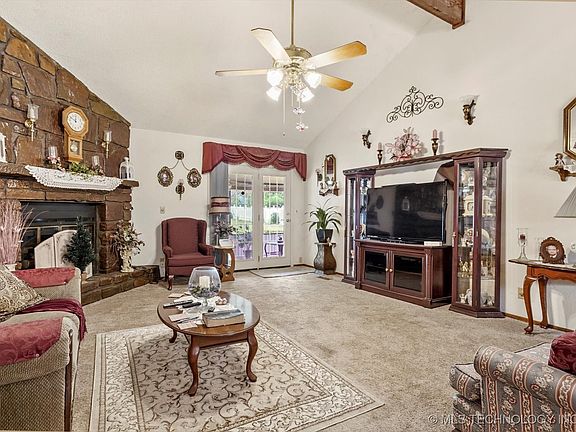Step inside this meticulously, well maintained, cared for home located in Timberridge Estates. This home features open living area with vaulted ceilings and gas fireplace, formal dining, and a uniquely laid out kitchen with breakfast area. (Kitchen refrigerator and washer/dryer can remain with the property) A vaulted ceiling master bedroom with walk in closet and private master bath with an additional closet. Master bath with newer tile and shower insert, enjoy a peaceful bath in the tub. Split bedroom floorplan with 2 other roomy bedrooms and full bath with newer amenities. Newer furnace, roof and exterior vinyl siding. What sets this property off is the lot and drive-up shop with electric and additional parking area. This shop is great for storage of any sorts and/or a workspace. Enjoy the beautiful, serene landscaping as well. Located in the Coweta School District, Northwest Elementary.