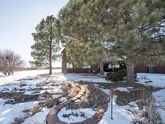 This home is a wonderful retreat within 15 minutes of Franktown, Parker, Castle Rock, and Elizabeth. The home features a living room with vaulted ceilings, 5 bedrooms, 3 bathrooms, and two wood-burning fireplaces. Enjoy the covered patio watching the sunset and beautiful Pikes Peak. There is a nice 4-stall barn and 8.43 acres of tranquility.