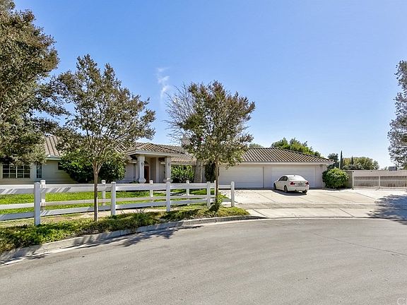 Located in the heart of Chino, this single-story estate home is what dreams are made of. Situated at the end of a quiet cul-de-sac with a coveted pie-shaped lot, the location is prime. The 60 and 71 freeways are just a few miles away, so access to SoCal is essential for a commuter who wants to live in a spacious setting. This property is zoned for horses, featuring stables and horse trails throughout the neighborhood. The layout of this house lends itself to an active family and entertaining - this is where everyone will gather for holidays and birthdays! The large kitchen is in the center of the home, and a giant family room with stone fireplace and vaulted, wood-beam ceilings look out onto the backyard. One of the bedrooms and baths is down a separate hallway next to the indoor laundry room, perfect for mother-in-law or nanny quarters. The other three bedrooms and baths are on the opposite side of the house, and the master suite is massive, with a huge walk-in closet, jacuzzi tub and french doors to the outside. The four-car garage has been divided into part private office and part garage, and outside is expansive. RV's, boats, horses, and toys will all fit in the side gate - a total of almost half an acre, so the possibilities are endless. Give us a call today to schedule a tour; this one will not last long.