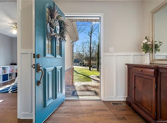 One-of-a-kind ranch in well-established neighborhood on over 1/2 an acre. Flat wooded lot on quiet cul-de-sac with walking trail to elementary school. New solid hardwood floors (2019). Two living areas, 5.1 surround speakers in den, board & batten, can lights, fireplace, large windows and french doors to the back deck, letting in tons of natural light and providing gorgeous views to the yard. White kitchen with rolling island, stainless steel appliances, large walk-in pantry. New HVAC (2016).