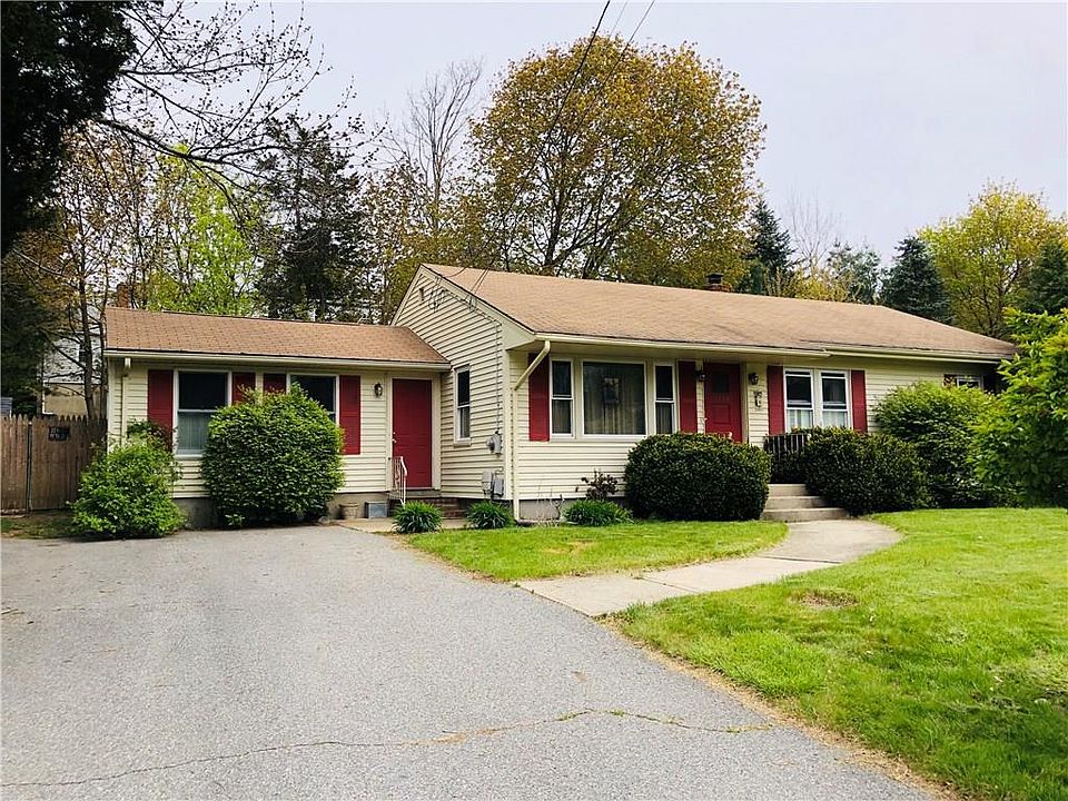 Located in Western Cranston. This vinyl sided ranch has 2-3 beds, sunken living room and vaulted ceiling with walk out to patio and big back yard. Nicely maintained with hardwood floors. Stainless steel appliances. Tons of closet space. Large and super clean basement. Big driveway. Add your personal finishing touches to this home. Endless possibilities!