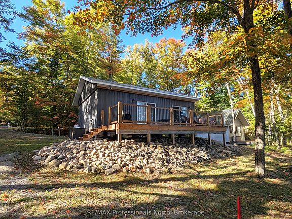 Nestled in the beautiful Almaguin Highlands on Spring Lake, located in the unorganized Township of Lount, this year round build has been completely renovated from top to bottom in 2021. The lake is spring fed, very clean, and approximately 70% crown land, with public access just down the road. The home/cottage is 2" x 6" construction, with 12" floors, new roof, insulation package, new electrical, plumbing, and full septic system for a 3 bedroom home. The home/cottage is complete with a dug well, and a cottage water supply system with UV, filters, and back-up heated line. Open concept living with living/dining area, 2 walkouts to large 11' x 32' deck, custom kitchen w/granite counter tops, 2 bedrooms, 4 pc bath, and foyer with stackable washer & dryer. For your guests there is a charming 12' x 16' Bunkie that would comfortably sleep 6. The property has a serene feel where you can sit back and relax on the deck overlooking the lake or on the dock taking in the sounds of the water and the calm of nature. Plenty of storage as well for your toys with the insulated 20' x 26' metal garage on concrete slab and 2 storage sheds. Added features include a large dock, boatlift, hard bottom shallow entry shoreline, and back-up generator with GenerLink hook up. This home/cottage is being sold "Turn Key", ready to go to start making lasting memories.